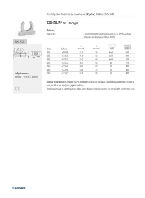 CONDUR clip has been designed to mount with safety on KOUVIDIS pliable and rigid conduits. It’s part of CONDURCONFLEX, MEDISOLMEDIFLEX, SILCORSIFLEX, CONDUR HF CONFLEX HF  & MEDISOL PLUSMEDIFLEX PLUS conduit systems for cable management and protection.