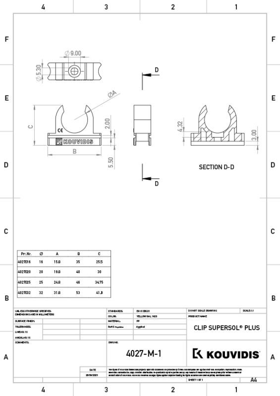 It is produced from specially stabilized thermoplastic PO blend in yellow color RAL 1023. Clips SUPERSOL PLUS are compatible with the use of nail fastening tools, providing thus ease and safety to the electrical installation.