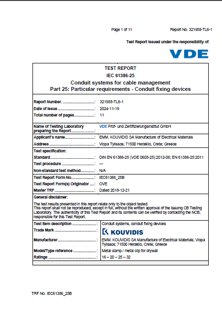 The new specially designed metal clamp of KOUVIDIS is the ideal solution for mounting rigid and pliable conduits quickly, easily and with safety on dry walls and wooden walls.