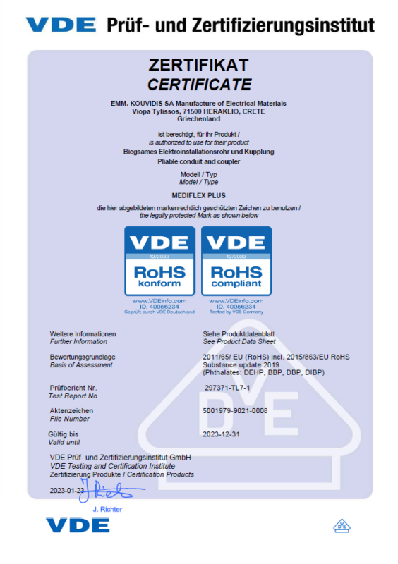 VDE RoHS Certificate – MEDIFLEX PLUS